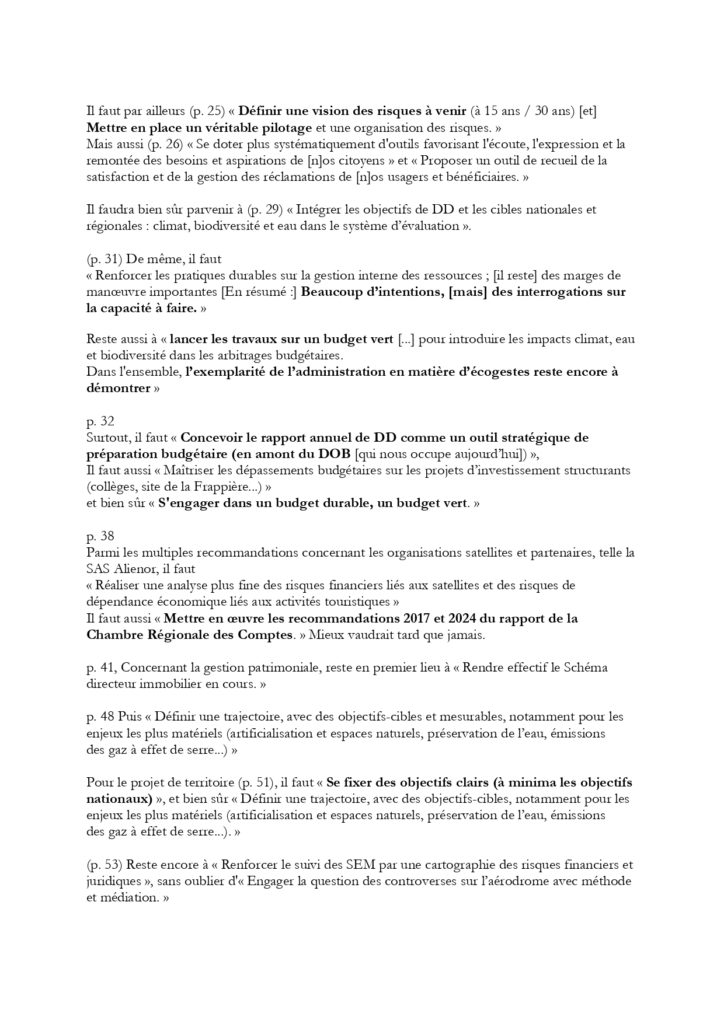 Cette intervention a suscité agacement et impatience dans les rangs de la majorité, qui s’est justifiée en prétextant que l’audit avait été effectué en 2024, et que le Département n’en était alors qu’au début de la démarche. Les orientations budgétaires 2026 présentées, comme l’a relevé Ludovic Devergne, ne semblaient pourtant pas davantage porteuses d’une « vision », d’orientations claires ni d’objectifs mesurables qu’en 2024.