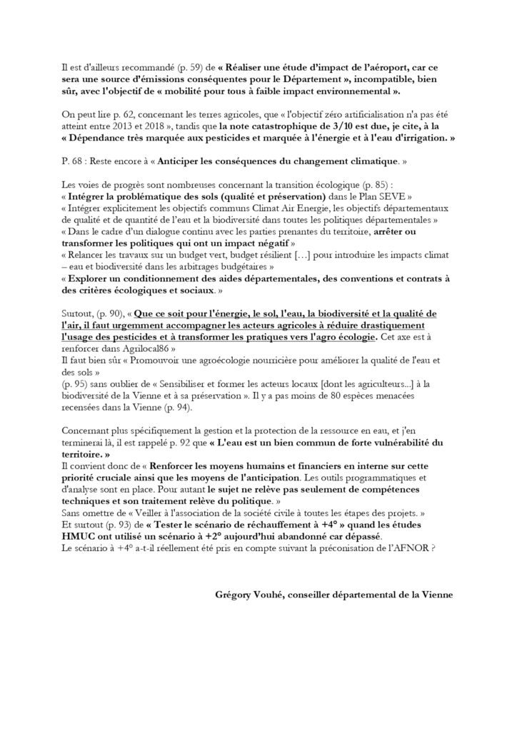 C’est Grégory Vouhé qui a traité un point critique de l’ordre du jour : la révélation du rapport RSO (responsabilité sociétale des organisations), obligatoire pour les collectivités territoriales, et qui évalue la durabilité de leurs pratiques du point de vue social et environnemental. Un rapport remis par l’organisme de certification Afnor et qui figurait dans le livret de travail des élus, mais que la majorité départementale a omis de présenter en séance publique. En effet, le document démontre sur près de 90 pages les performances très insuffisantes du Département de la Vienne dans les domaines expertisés.
